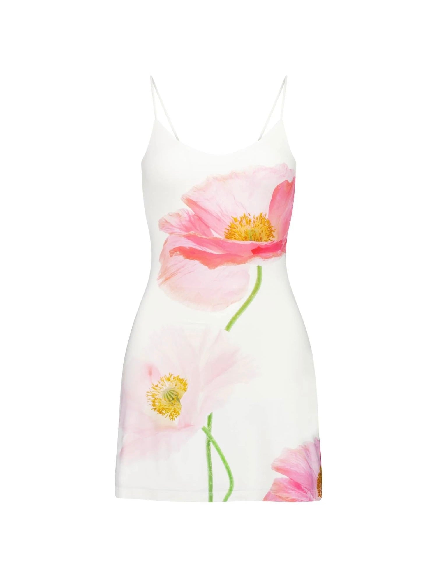 Introducing our enchanting Poppy Blossom A-Line Mini Dress, a timeless blend of elegance and grace that effortlessly combines style with comfort. Embrace the ethereal allure of this stunning white dress, adorned with vibrant poppy florals that add a touch of whimsy to your wardrobe.
